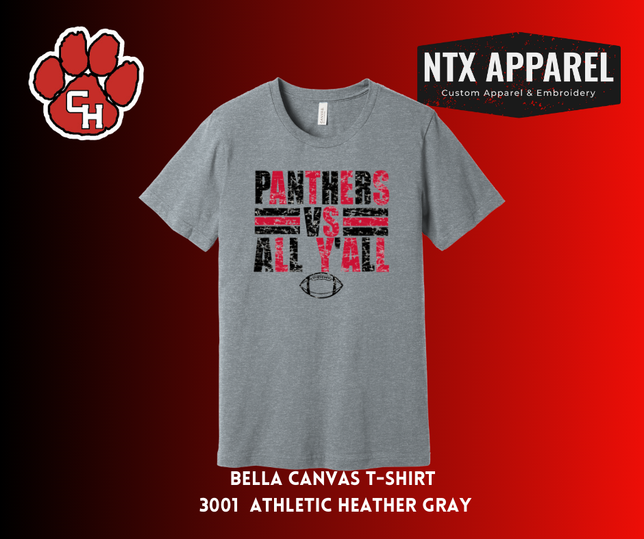 Wear your Panther pride proudly with this super soft Bella + Canvas T-Shirt. A portion of your purchase will go to the CHHS Football Booster Club.