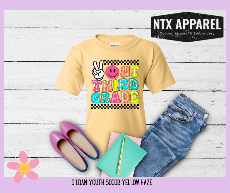 Get ready to say goodbye to 3rd grade with style in our Peace Out 3rd Grade t-shirt. With its bold design and message, it's the perfect way to celebrate the end of a successful school year. Made with high-quality materials, it's comfortable and durable, making it a great option for everyday wear.