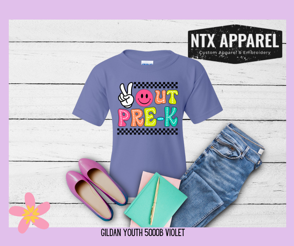 Get ready to say goodbye to Pre K with style in our Peace Out Pre Kt-shirt. With its bold design and message, it's the perfect way to celebrate the end of a successful school year. Made with high-quality materials, it's comfortable and durable, making it a great option for everyday wear.
