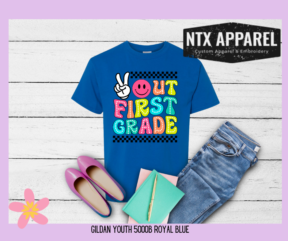 Get ready to say goodbye to 1st Grade with style in our Peace Out 1st Grade t-shirt. With its bold design and message, it's the perfect way to celebrate the end of a successful school year. Made with high-quality materials, it's comfortable and durable, making it a great option for everyday wear.